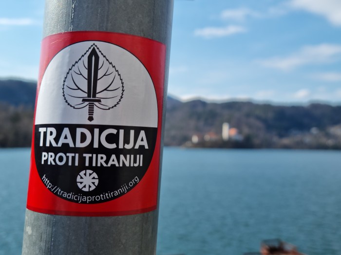 Zaradi tega se moramo vse bolj zatekati k staromodnim načinom širjenja našega sporočila in idej. Obenem pa z uličnim aktivizmom dajemo vedeti tako našim podpornikom, kot tudi nasprotnikom, da Tradicija proti tiraniji ni le nekakšen projekt na družbenih omrežjih, ki ga lahko globalisti z enim samim klikom izključijo in onemogočijo, temveč smo prisotni tudi na ulicah slovenskih mest in bijemo kulturni boj tudi v »resničnem« življenju. Bolj ko nas bodo cenzurirali na spletu, bolj bomo prisotni na ulicah, kjer bomo še naprej na miren način širili identitarne ideje tradicije in domoljubja.