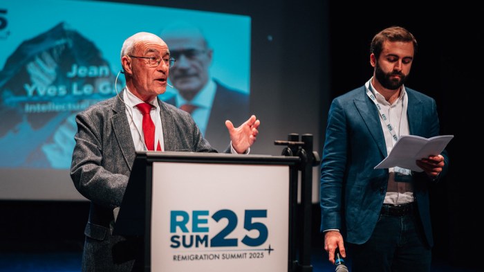 Glede drugih govorcev velja izpostaviti še govor francoskega politika in misleca Jeana Yves Le Galloua, nekdanjega evropskega poslanca, ki je popeljal občinstvo v meglene začetke zgodovine Evropejcev. Bil je edini na tem mednarodnem dogodku, ki je zbrane nagovoril v svoji domači francoščini, s pomočjo angleškega prevajalca. »Evropa je celina Evropejcev«, je začel svoj govor, v katerem se je skozi globočine časa vrnil 40.000 let nazaj v čase lovcev-nabiralcev, ki so prebivali v Evropi davno preden je slednja sploh dobila ime. Svoje gene delimo s prvimi jamskimi slikarji, ki so slikali na stene jam v Franciji, Španiji, Nemčiji in Italiji, je dejal. Zatem so prišli v Evropo sprva anatolski kmetje in nekaj tisočletij kasneje tudi Indoevropejci iz Pontsko-kaspijskih step. Te zadnje velike selitve so povzročile razvoj indoevropskih jezikov, ki jih govorimo še danes, kot tudi duhovnost in družbene strukture, ki so oblikovale evropsko civilizacijo. Njena starodavnost vključuje 40.000 let genetske podlage, 5.000 let kulturne identitete in 2.000 let religijskih povezav. Vendar pa je danes Evropa Evropejcev ogrožena. Zaradi tega je remigracija popolnoma upravičena, nujna in izpeljiva. Le Gallou je poudaril, da je danes, ko mednarodni sporazumi ščitijo ogrožena domorodna ljudstva, nujno zaščititi tudi Evropejce in njihovo kulturo v domovinah njihovih prednikov. Naštel je več demografskih dejstev, ki pričajo o urgentnosti ukrepanja. Za konec je opozoril, da ne gre kriviti za vse samo Evropske unije, saj so za zgrešeno migrantsko politiko odgovorni velikokrat državni voditelji, ne izključno bruseljske ustanove. Gre za zgrešeno ideologijo, ki jo Bruselj deli z Berlinom ali Parizom. Evropejci se morajo združiti v identitarnih naporih, da ustvarijo pogoje v katerih bo prišlo do remigracije.